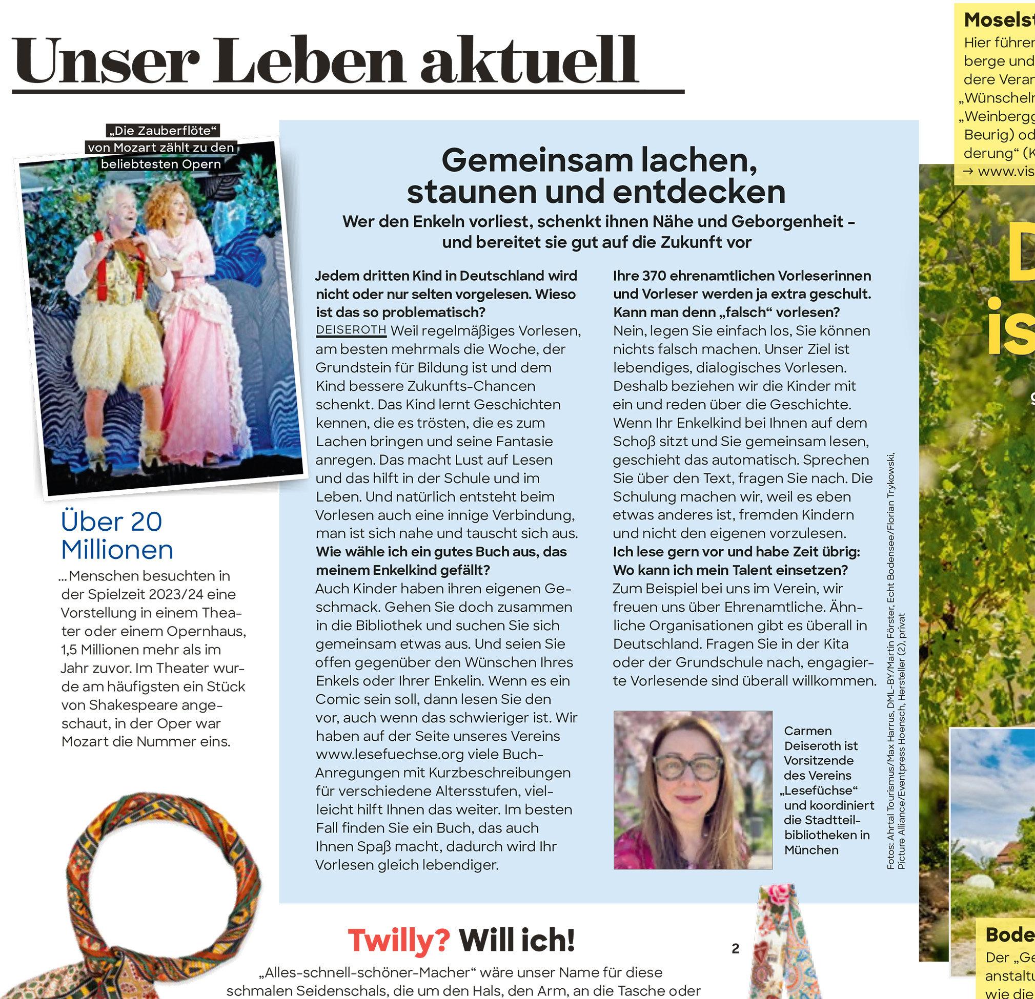 Der Herbst steht vor der Tür und da sitzt man vielleicht mal längere Zeit mit einem Buch vor sich in der warmen Stube. Die Redaktion der “Frau im Leben”, einer monatlichen Publikation der Bogenhauser Agentur 2 Publishing, wollte Expertentipps für ihr Oktoberheft hören. Klar war Deiseroth gerne dazu bereit. Als Vorsitzende der Lesefüchse weiß sie schließlich auch bestens Bescheid.
